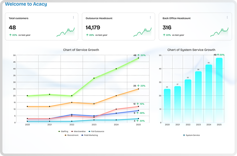Acacy combines a vast talent pool, strong HR expertise, and tech-enabled processes to deliver reliable, scalable manpower solutions. We tailor our services to client needs, ensuring speed, quality, and legal compliance from onboarding to offboarding.